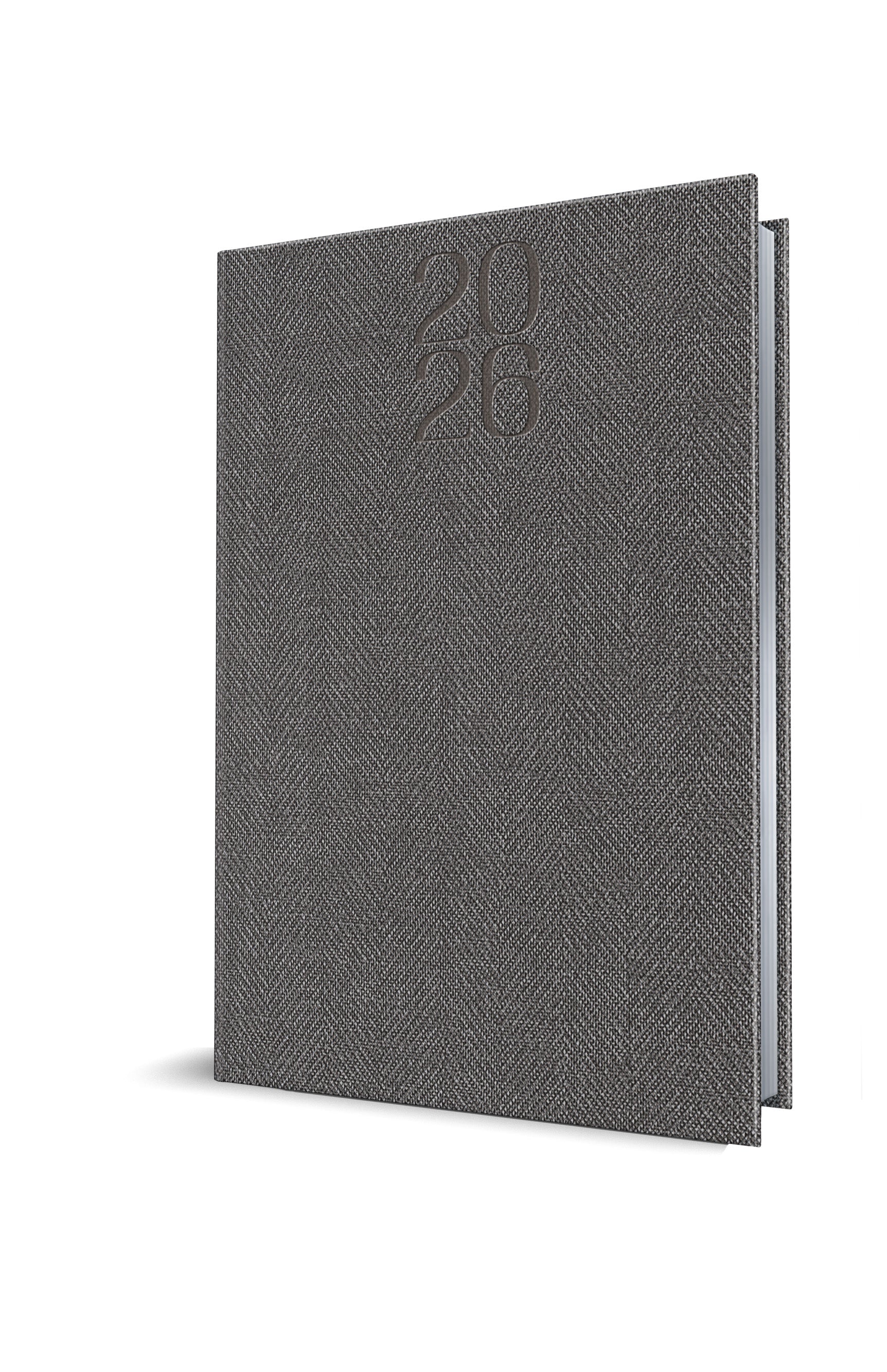 Agendă A5, datată, de 352 pagini, tipărită în limba română pe hârtie 80 g/mp. Filele sunt prinse în fascicule, cusute de cotor, margine folio argintie.