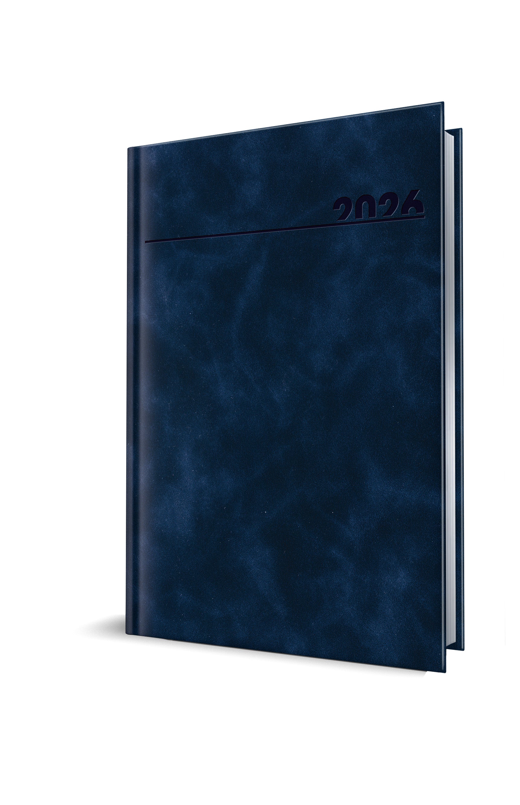 Agendă A5, datată, de 352 pagini, tipărită în limba română pe hârtie 80 g/mp. Filele sunt prinse în fascicule, cusute de cotor, margine folio argintie / aurie, și copertă buretată din piele ecologică cu textură catifelată.