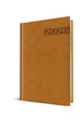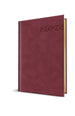 Agendă A5, datată, de 352 pagini, tipărită în limba română pe hârtie 80 g/mp. Filele sunt prinse în fascicule, cusute de cotor, margine folio aurie și copertă buretată cu textură piele.