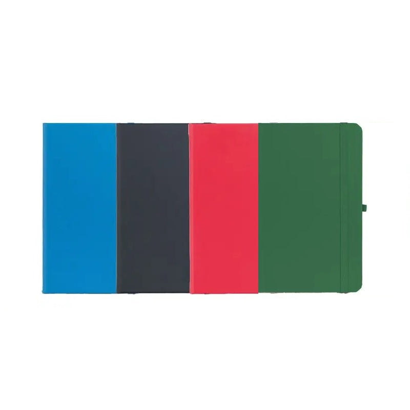 Agenda nedată, cu hârtie offset ivoire 70 g/mp, cusută, legată. Finisare bloc specială, asigurând o deschidere de 180˚, colţuri rotunjite bloc și copertă, semn de carte negru. Elastic asortat în ton sau în contra ton cu coperta, buzunar realizat din forzat spate. Sistem de prindere din elastic pentru instrument de scris.