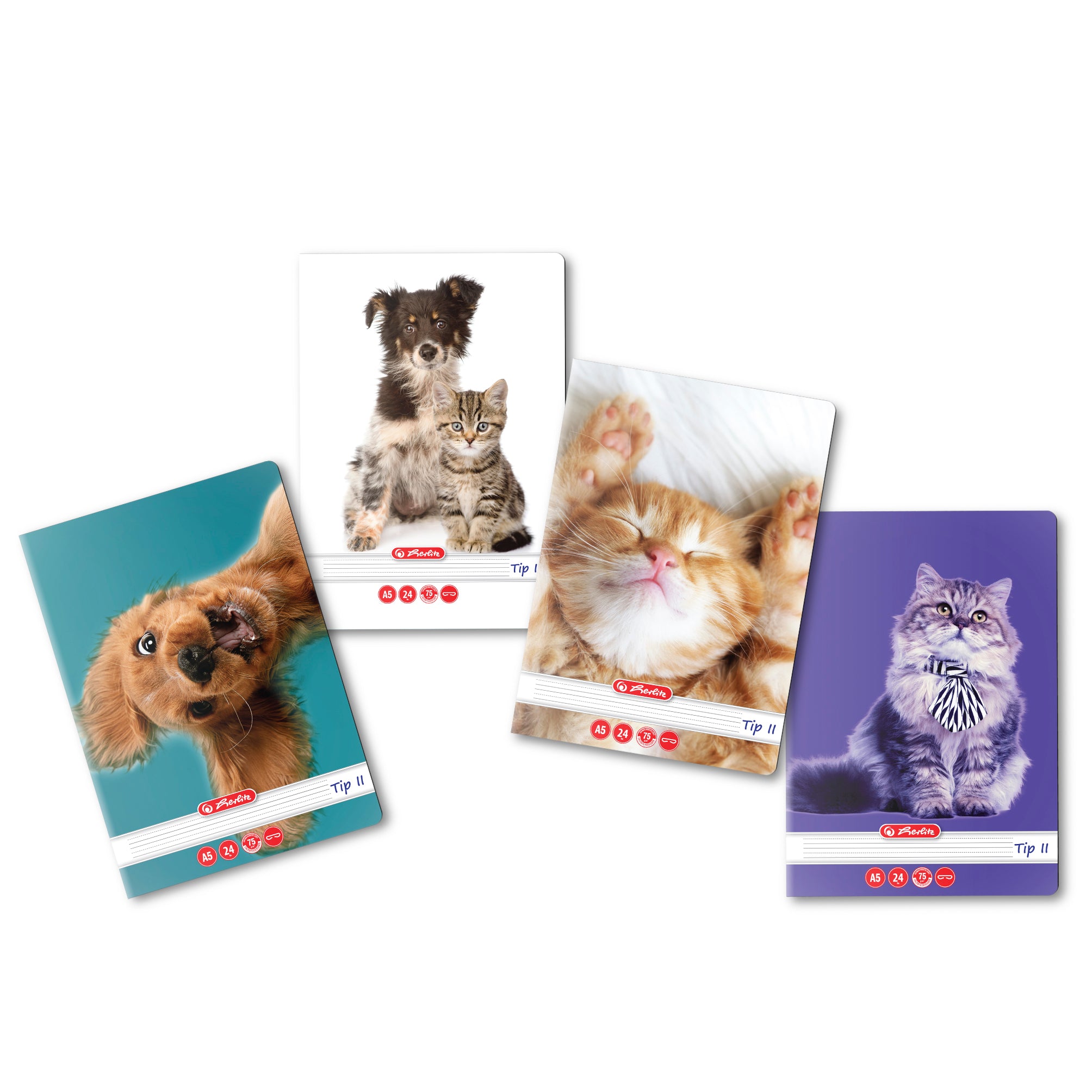 Caiet tip II, format A5, 24 file, coperți policromie, carton duplex, hârtie 75 g/mp, liniatură specială, capsat, diverse motive.