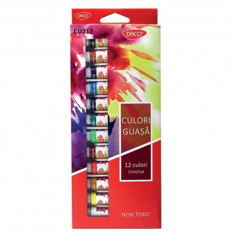 Culori guașă non-toxice, cu pigmenți de calitate și capacitate de acoperire mare. Culorile sunt pe bază de apă și se pot amesteca pentru a obține nuanțe noi. Ideale pentru copii.