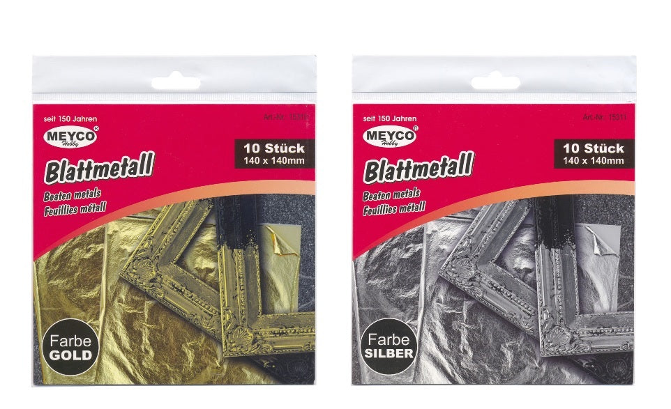 Pentru a crea efectul metalic, aveți nevoie și de adezivul pentru foița metalică ( 75799 ) și de o perie sintetică moale, plată.