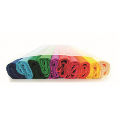 Hârtie creponată pentru confecționat decorațiuni și pentru desfășurarea activităților de craft, folosită în activitățile desfășurate în grădinițe și scoli la orele de desen, educație tehnologică și desen, sau pentru lucrări artistice. Hârtie creponată, Hobby, dimensiune 200 x 50 cm, 31 g/mp, prezentată sub formă de sul. Culorile sunt transferabile în urma contactului cu apă. Setul conține următoarele culori: alb, galben, portocaliu, roșu, roz, albastru, verde, verde deschis, maro, albastru deschis.