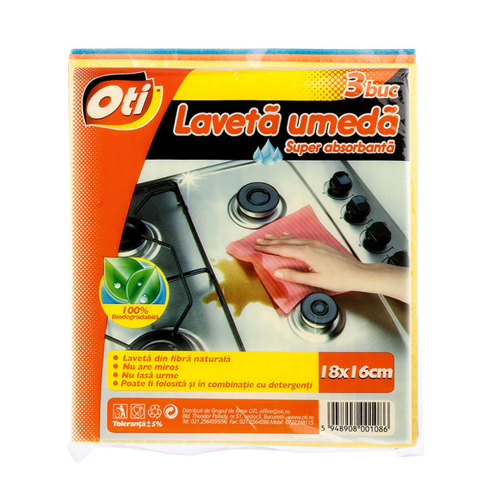 Lavete super absorbante din fibră naturală, 100% biodegradabilă. Are putere mare de absorbție și poate fi folosită și în combinație cu detergenți. Înlătură eficient orice tip de murdărie.