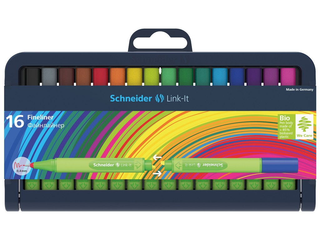 Fineliner cu vârf din fibră. Corp cauciucat și ergonomic, realizat în proporție de 88% din plastic biodegradabil.