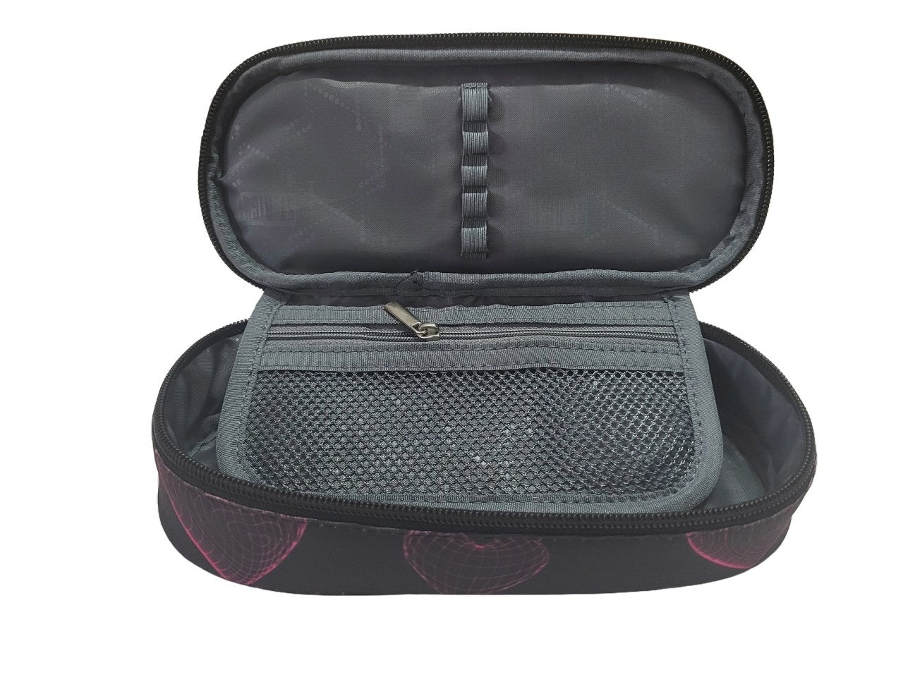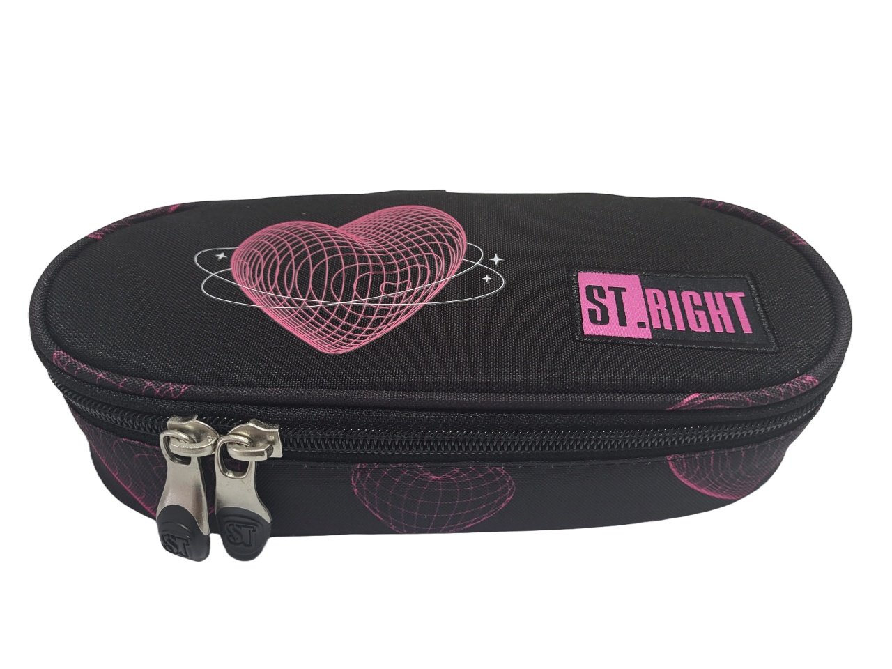 Penarul St.Right este un penar spațios, realizat material textil, de înaltă calitate, impermeabil, rigidizat cu burete, cu 1 fermoar cu 2 cheițe metalice și atent finisate. Penarul are o clapetă internă care include un buzunărel tip plasă cu fermoar și elastice dedicate instrumentelor de scris, pentru o mai bună organizare.