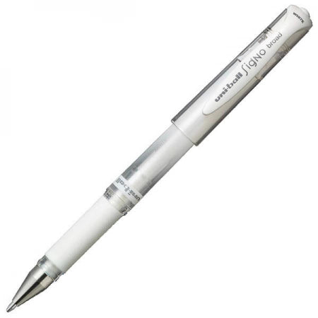 Pix alb cu gel UNI-BALL Signo Broad, UM-153, perfect pentru realizare decorațiuni sau proiecte de artă pe hârtie închisa la culoare.