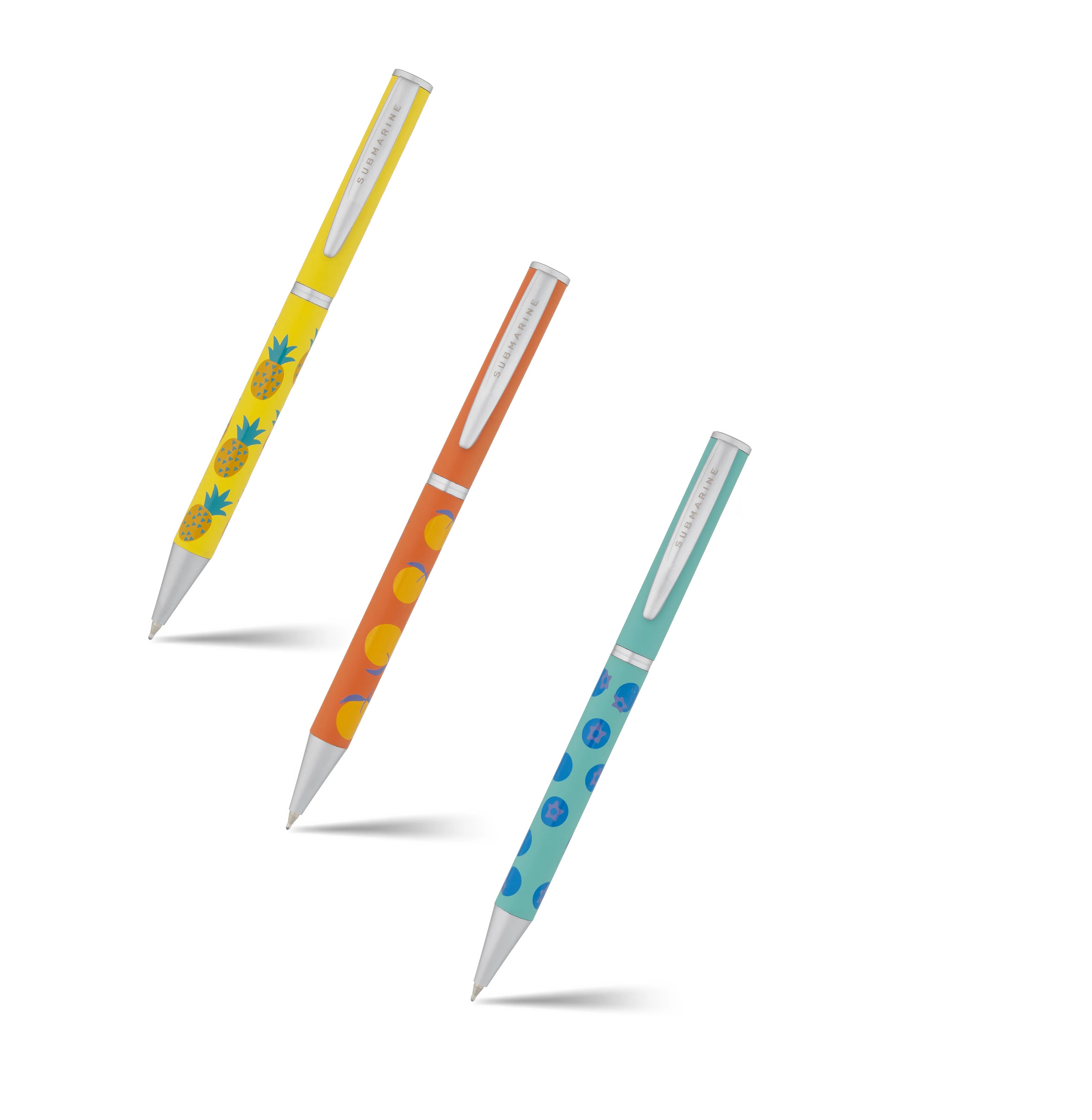 Set pixuri Frubloom, mecanism prin răsucire, corp cu fructe, parfum de fructe: ananas, portocala, afine.