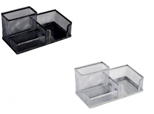 Suport de Birou, 3 compartimente, Ecada, confecționat din metal, pentru un birou ordonat. Prevăzut cu 3 compartimente pe categorii, produsul te scutește de grija obiectelor împrăștiate, astfel: unul pentru pixuri și creioane, al doilea pentru notițe tip cub, iar al treilea pentru agrafe, capse, radiera si alte accesorii mici de birou. Designul antiderapant ajută la menținerea obiectului pe poziție clară și previne apariția zgârieturilor pe masă.